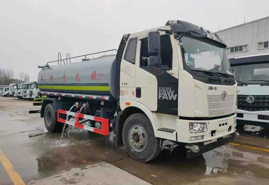 | Upper body configuration: | The tank has an actual capacity of 15 tons. The tank body is made of high-quality carbon steel plate from Wuhan Iron and Steel Group. The tank is elliptical or square, and the lower end of the internal partition has through holes for wave protection. It features front and rear spraying, side spraying (which becomes a side shower after changing the nozzle), a rear-mounted work platform (with steps and safety railings on all sides), and a high-pressure water cannon (which can rotate 360° and be adjusted to a columnar shape). It is equipped with a high-quality dedicated water pump, power take-off, debris filter, and a national standard universal fire hydrant interface (for adding water through fire hydrants). | ||
